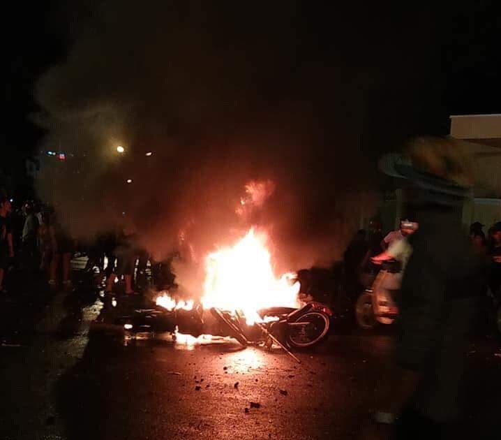 Một số người dân quá khích đốt xe tại Bình Thuận
