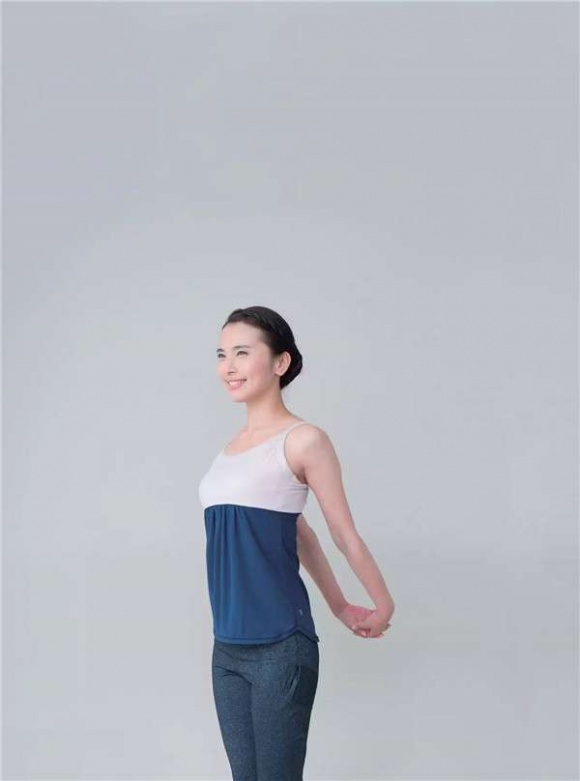 Không cần đến các loại dụng cụ để tập thể hình, giảm mỡ bụng bằng cách đưa tay về phí sau vô dụng dễ áp dụng và có thể tập luyện mọi lúc, mọi nơi. Thực hiện phương pháp này bạn chỉ cần giữ cơ thể ở trạng thái thẳng đứng, duỗi thẳng hai cánh tay về phía sau kết hợp luồn các ngon tay tay vào nhau sao cho lòng bàn tay hướng lên phía trên, sau đó dùng lực của khuỷu tay kéo phần bàn tay tiến về phía lưng, kết hợp hít thở sâu và đều. Cứ như vậy lặp đi lặp lại trong khoảng 2 phút. Với động tác này chú ý luôn duy trì cơ thể ở trạng thái thẳng đứng, không được nghiêng ngả để mang lại hiệu quả tốt nhất.