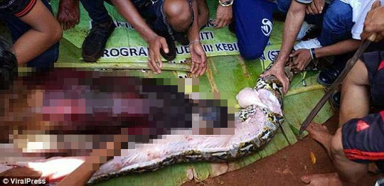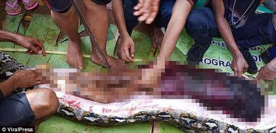 Thật kinh hãi khi mổ bụng trăn 8m phát hiện thi thể phụ nữ