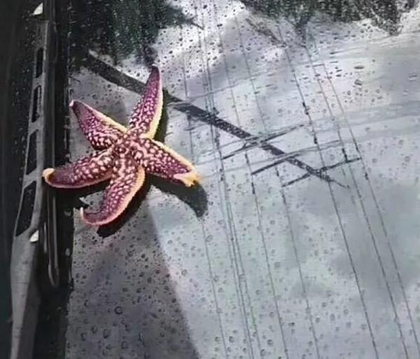Sao biển nằm trên mui ô tô. Ảnh: Weibo