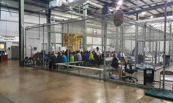 Trẻ em và những người nhập cư bất hợp pháp bị giam trong các rào sắt ở một trại tạm giam tại bang Texas. Ảnh: US CBP