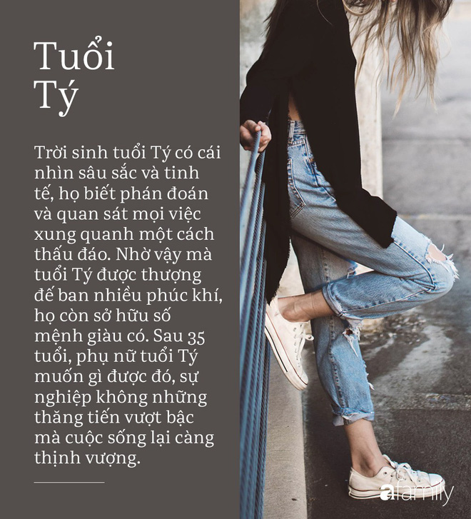 Tuổi Tý không nói không có nghĩa là họ không biết và đều chuẩn bị tinh thần bình tĩnh để đối mặt với tất cả khó khăn, vất vả. Nhờ vậy mà tuổi Tý được thượng đế ban nhiều phúc khí, họ còn sở hữu số mệnh giàu có. Sau 35 tuổi, phụ nữ tuổi Tý muốn gì được đó, sự nghiệp không những thăng tiến vượt bậc mà cuộc sống lại càng thịnh vượng khiến ai cũng ngưỡng mộ.
