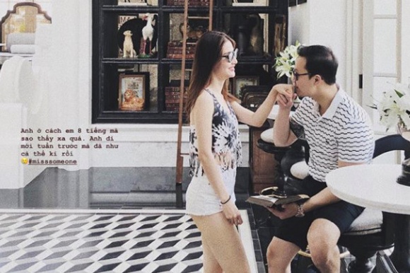 Cách đây không lâu, cô ngọt ngào gọi bạn trai là Gấu cùng lời chia sẻ: "Cảm ơn Gấu của em thật nhiều vì những nỗ lực của Gấu để yêu thương và làm cho em được hạnh phúc. Cảm ơn Gấu của em đã lên bản kế hoạch tuyệt vời để dẫn em đi chơi rất cẩn thận và tỉ mẩn. Cảm ơn Gấu đã luôn kiên nhẫn với em, dắt em đi ăn những chỗ ngon nhất, xách vali cho em, chịu đựng những tính cách hời hợt và luôn nhớ dùm em những thứ em quên. Gấu luôn quan tâm đến cảm xúc, chia sẻ gánh nặng công việc và cuộc sống với em và mới đây là xay sinh tố cho em uống. Nắm tay em và luôn ôm em, hôn em mọi lúc mọi nơi. Gấu ơi em thật may mắn khi có anh là bạn trai của em. Yêu anh lắm".