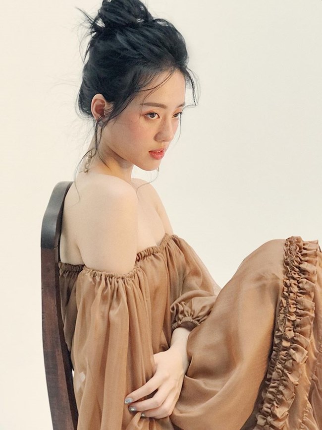 Không chỉ biến hóa đa dạng với thiết kế áo bo chun trong nhiều concept khác nhau, Khánh Linh còn thể hiện sự chỉn chu từ layout trang điểm tới cách làm tóc, tăng phần quyến rũ.