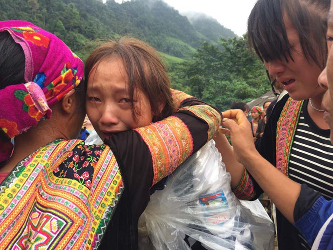 Em Hạng Thị Thứ (học sinh Trường THPT dân tộc nội trú H.Sìn Hồ) bật khóc khi gặp được người thân sau trận sạt lở đất