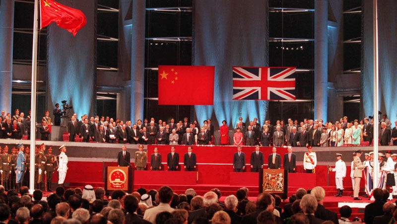 Vào ngày 1/7/1997, Hong Kong chính thức được trao trả cho Trung Quốc. Chris Patten, thống đốc cuối cùng của Hong Kong thuộc Anh, đã nhận quốc kỳ Anh sau khi nó được kéo xuống khỏi dinh thự của ông. Người dân Hong Kong đã chứng kiến khoảnh khắc quốc kỳ Trung Quốc được kéo lên ở hòn đảo này.