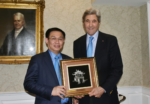 Chiều cùng ngày, Phó Thủ tướng Vương Đình Huệ cũng gặp gỡ cựu Ngoại trưởng John Kerry. Phó Thủ tướng Vương Đình Huệ đã chuyển lời hỏi thăm thân tình của các lãnh đạo cấp cao Việt Nam tới ông Kerry, người bạn thuỷ chung của nhân dân Việt Nam. Phó Thủ tướng cho biết Việt Nam luôn trân trọng và đánh giá cao những nỗ lực và đóng góp giá trị của cựu Ngoại trưởng Kerry đối với quan hệ Việt Nam - Hoa Kỳ nhiều thập kỷ qua, trong đó có hợp tác giáo dục đào tạo.