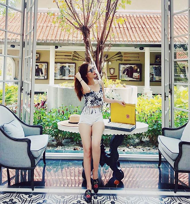 Cô luôn khéo léo khoe thân hình gợi cảm cùng số đo ba vòng cực chuẩn qua những bộ bơi khi đi nghỉ dưỡng cùng người yêu.
