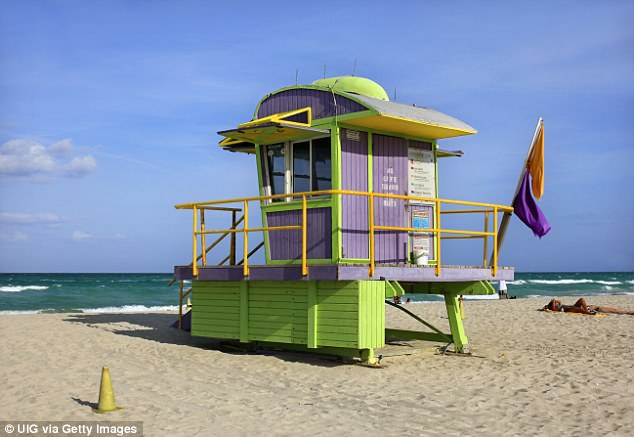 Lá cờ cảnh giác màu tím hiện đă được đặt trên băi biển Florida để cảnh báo du khách về sinh vật biển này.
