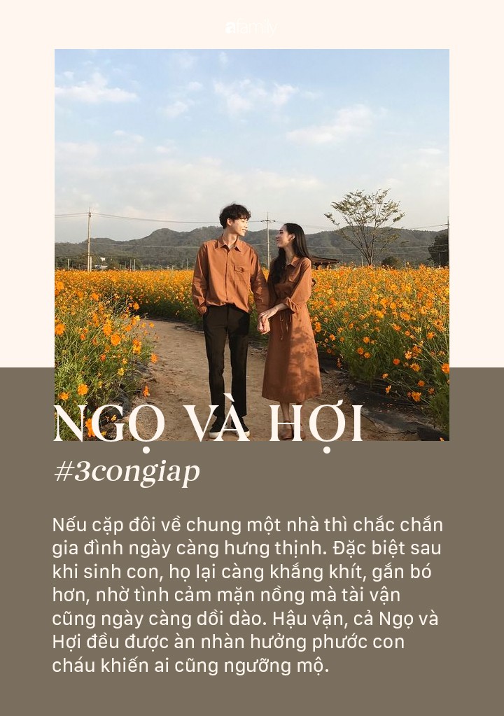 Vì vậy, nếu cặp đôi này về chung một nhà thì chắc chắn gia đình ngày càng hưng thịnh. Đặc biệt sau khi sinh con, họ lại càng khắng khít, gắn bó hơn, nhờ tình cảm mặn nồng mà tài vận cũng ngày càng dồi dào. Hậu vận, cả Ngọ và Hợi đều được àn nhàn hưởng phước con cháu khiến ai cũng ngưỡng mộ.