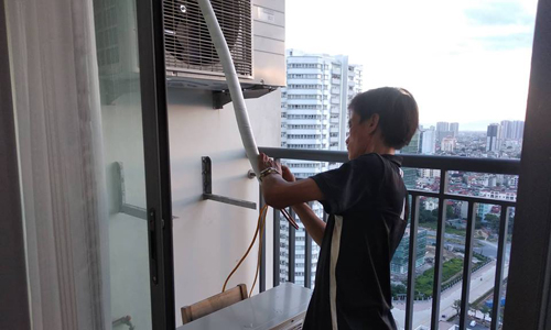 Nhu cầu sửa chữa, lắp điều hòa tăng cao từ đầu tháng 6. Ảnh: Anh Tú.
