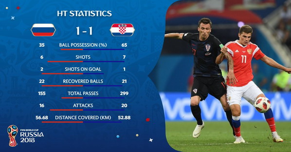Trận tứ kết cuối cùng World Cup 2018 giữa Nga và Croatia sắp diễn ra. Nga và Croatia đã gặp nhau 3 lần trong quá khứ, Nga chưa thắng được trận nào, Croatia thắng 1.