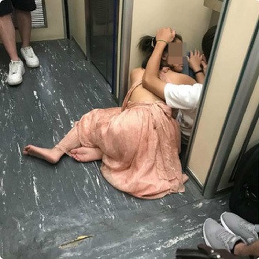Đi kèm cùng bức hình chính là những bức ảnh về một đôi nam nữ được cho là người Việt Nam. Cô gái ăn mặc khá sexy táo bạo, cả hai cùng ngồi bệt trên sàn tàu điện ngay trước khu vực nhà vệ sinh.