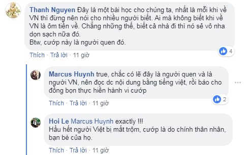 Cũng có những ư kiến gia đ́nh này đă quá chủ quan, khoe khoang tiền và để lộ thông tin lịch tŕnh về Việt Nam dẫn đến mồi ngon cho bọn cướp