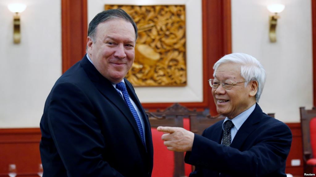 Tự thân cuộc gặp giữa Ngoại trưởng Hoa Kỳ Mike Pompeo và Thủ tướng Việt Nam Nguyễn Xuân Phúc vào ngày 9/7/2018 tại Hà Nội đã nói lên gần hết về thực chất chuyến đi Việt Nam của Mike Pompeo: ‘làm sâu sắc hơn mối quan hệ đối tác toàn diện giữa hai nước’ theo ngữ điệu của cả hai bên, hay đó chỉ là một cách nói thuần túy của giới quan chức ngoại giao bên bàn tiệc và giữa những ly sâm banh sủi bọt đấy nhưng cũng tan biến đấy?