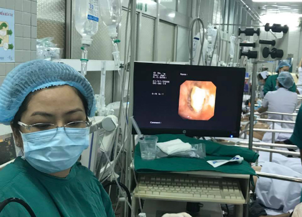 Bác sĩ Phạm Thị Vân Thanh, Khoa Nội soi, Bệnh viện Chợ Rẫy cho biết sáng 12/7 bệnh viện đã hội chẩn liên chuyên khoa, quyết định tiến hành gắp dị vật bằng nội soi ống mềm cho bệnh nhân mà không phải chuyển qua phòng mổ.