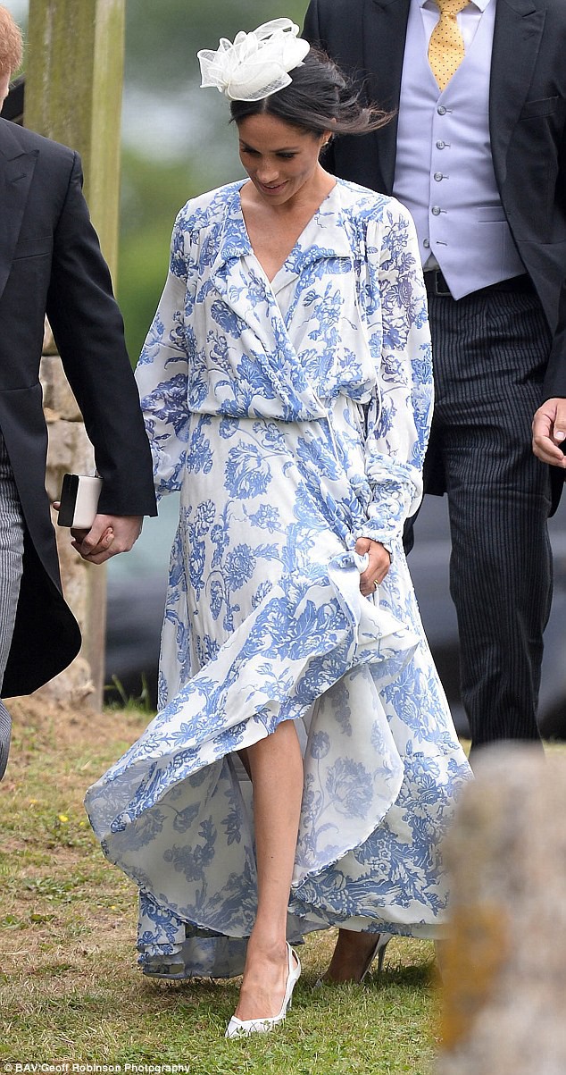 Khi dự đám cưới cùng hoàng tử Harry, cô diện váy Oscar de la Renta dress, clutch Carolina Herrera, mũ Birks, giày Aquazzura và cltuch Marks&Spencer với giá trị 187 triệu đồng.