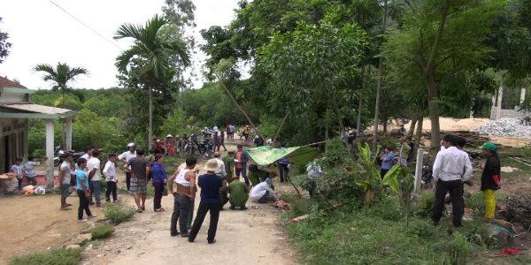 Đến khoảng 9h30, ông Đinh Văn Theo (40 tuổi) là cha ruột của cháu T. đi làm rẫy về thấy T. đang chơi với 2 đứa cháu của ông Đinh Trủi trước nhà. Lúc này, ông Theo bất ngờ dùng rựa đuổi theo T. chém hai nhát vào đầu con ruột, khiến cháu T. chết tại chỗ.
