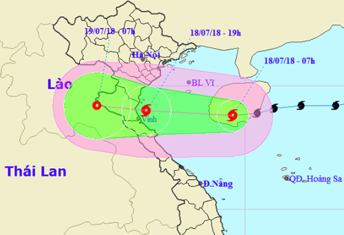 Đường đi của bão lúc 9h ngày 18/7. Ảnh: NCHMF.