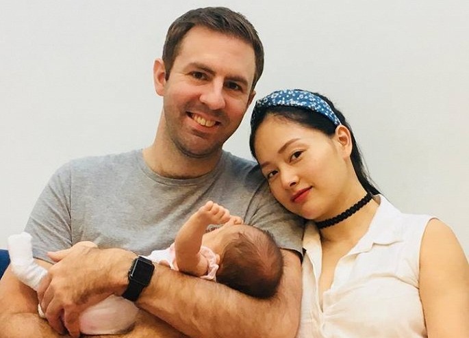 Lan Phương hạnh phúc bên ông xã và con gái mới sinh