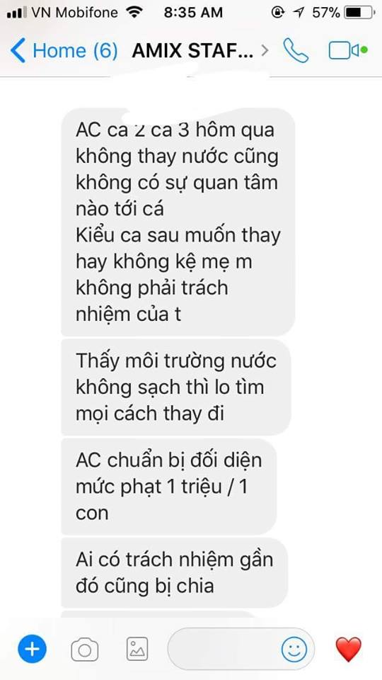Ông chủ lúc nào cũng bảo bọn em phải có lòng yêu thương động vật mới làm được ở vị trí này, giờ mỗi lần cá chết bọn em phải đền tiền.