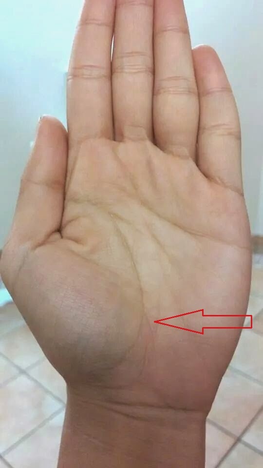Đặt ngửa 2 bàn tay, đường tình duyên và đường trí tuệ hợp lại thành một đường ngang rõ nét chạy ngang bàn tay, khiến bàn tay nhìn vào như bị chia làm đôi.