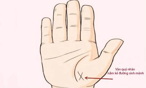 Nếu người nào có vân quý nhân nằm kế đường sinh mệnh trên bàn tay thì xác định cuộc sống luôn được quý nhân che chở và bảo vệ. Đặc trưng của bàn tay này là được trời ban nhiều phúc đức, cuộc sống tuy có khó khăn, trắc trở nhưng họ ít khi nào rời vào cảnh đường cùng hay túng thiếu vì có quý nhân luôn bên cạnh. Thậm chí, vào giai đoạn trung niên vị trí vân quý nhân ngày càng đậm hơn, đó cũng chính là lúc họ gặp được nhiều may mắn và thành công trong cuộc sống. Không những thế, hậu vận của họ là những chuỗi ngày an nhàn, càng lớn tuổi sức khỏe càng tốt, không ốm đau bệnh tật, ngươc lại còn đủ minh mẫn để kiếm thật nhiều tiền.