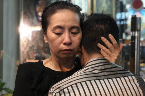 Vợ Thanh Hoàng trong ṿng tay an ủi của người quen. Ảnh: Mai Nhật.