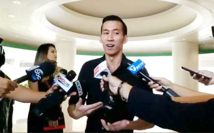 Ông Will Nguyễn trả lời phỏng vấn báo giới tại phi trường quốc tế Houston. (Hình chụp qua màn hình TV)