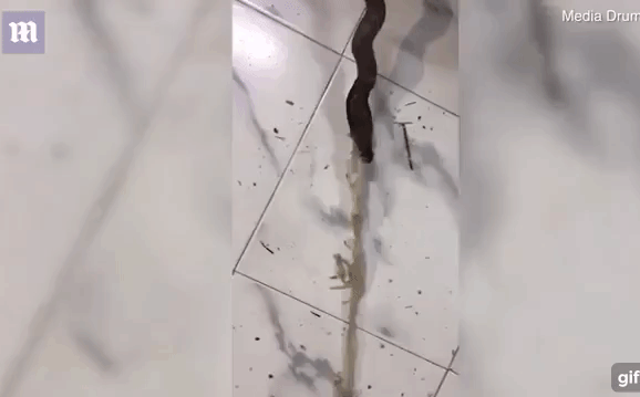Một con rắn hổ mang với kích thước lớn đã bị người dân bắt tại trận. Theo đó, con rắn đang cố ăn màng bọc. Sau một hồi bị bắt, nó quằn quại nôn ra thứ mình vừa ăn vì không thể nuốt nổi chúng.
