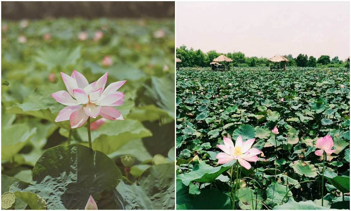 Đồng sen Tháp Mười: Địa danh sống ảo đẹp mê hồn này cách TP.HCM 130 km về phía Nam. Khu du lịch Đồng sen tại xã Mỹ Hòa, huyện Tháp Mười gây xao xuyến bởi vẻ đẹp của khung cảnh miền quê mộc mạc, yên bình. Bốn bề là đồng sen bát ngát tỏa hương ngào ngạt. Ảnh: @