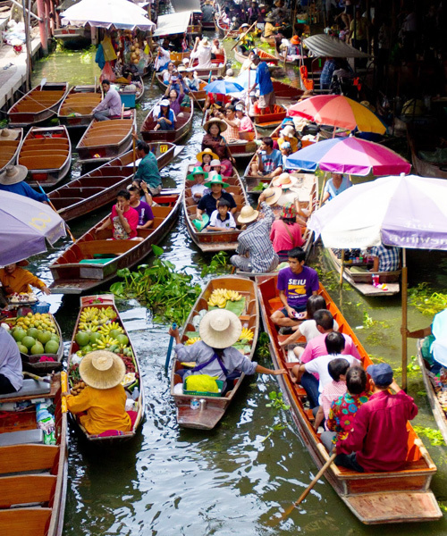 Khu chợ nổi nằm cách Bangkok 100 km được biết đến nhiều nhất ở Thái Lan. Chợ có quy mô lớn, đầy màu sắc rực rỡ, tấp nập thuyền bán hoa quả. Đây là nơi hoàn hảo để bạn chụp ảnh và khoe với bạn bè, người thân.