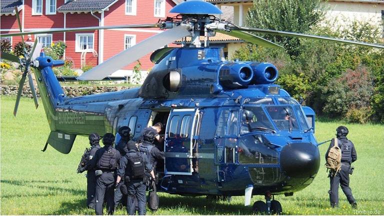 Nghi can Nguyễn Hải Long bị dẫn độ về Karlsruhe, CHLB Đức bằng trực thăng của đội đặc nhiệm chống khủng bố ( Foto: Cảnh sát Liên bang Đức)