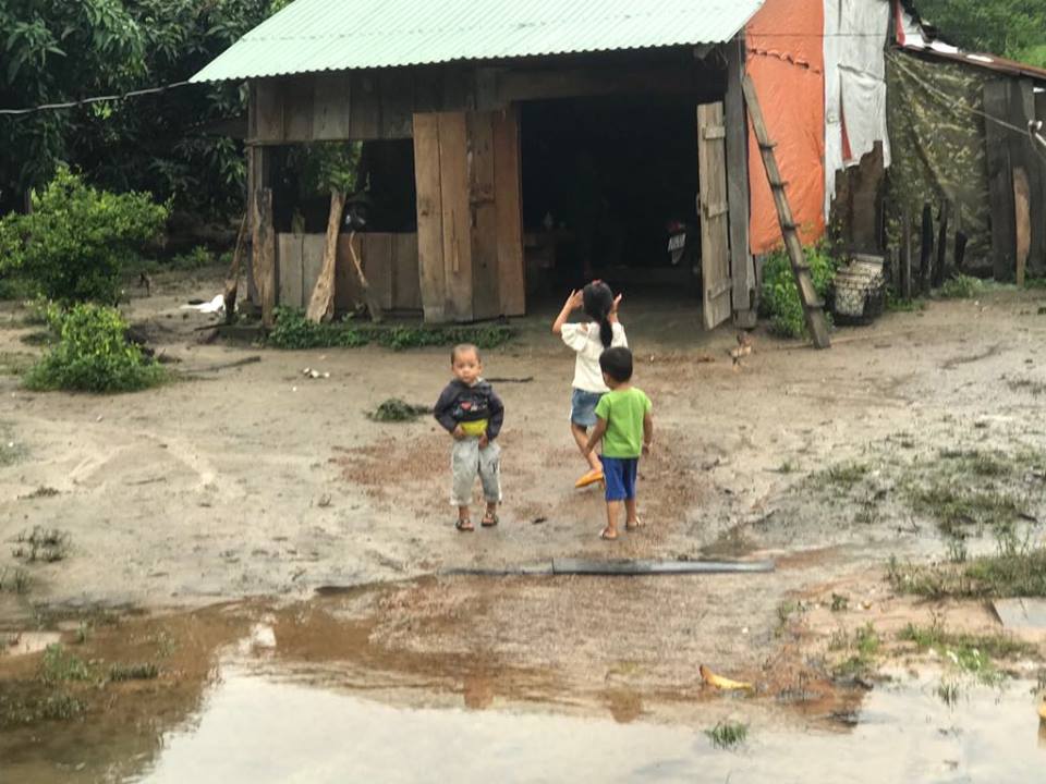 Những đứa trẻ ngơ ngác trở về nhà sau cơn lũ.