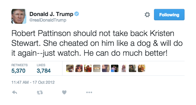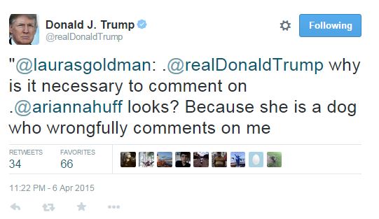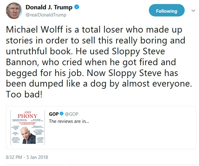 “Wacky Omarosa (Omarosa mát dây) đã ba lần bị thải ở Apprentice, bây giờ bị đuổi việc lần chót. Cô ta chưa bao giờ, không bao giờ sẽ thành công. Cô ta khóc năn nỉ xin tôi việc. Tôi cho. Mọi người ở tòa Bạch Ốc ghét cô ta. Omarosa độc ác nhưng không khôn ngoan.” (C.H)