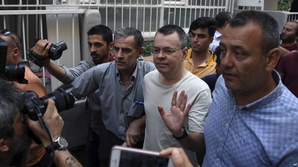 Quan hệ giữa Thổ Nhĩ Kỳ và Mỹ đã xấu đi vì vụ giam giữ ông Brunson, cũng như lợi ích dị biệt của hai nước về Syria. Ông Trump đã tăng gấp đôi thuế nhập khẩu áp đặt lên thép và nhôm của Thổ Nhĩ Kỳ vào tuần trước, góp phần khiến đồng lira tuột dốc thê thảm.