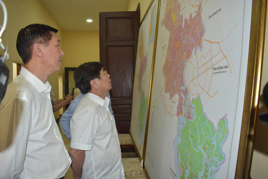 Lãnh đạo TP HCM xem bản đồ điều chỉnh quy hoạch sử dụng đất (Ảnh Phan Anh)