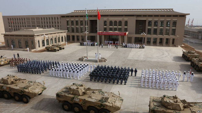 "Tháng 8/2017, Trung Quốc chính thức đưa vào hoạt động căn cứ quân sự đầu tiên ở nước ngoài (Djibouti), đồng thời triển khai một đại đội lính thủy đánh bộ và các trang thiết bị khí tài đến căn cứ này.