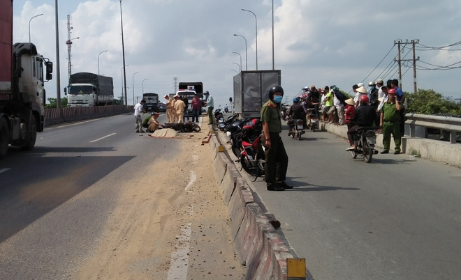 Đầu giờ chiều 22.8, người dân lưu thông trên Quốc lộ 1 hướng từ An Lạc về An Sương (đoạn dốc cầu An Lập, quận Bình Tân), phát hiện người đàn ông tử vong trên làn đường ô tô, cạnh đó là chiếc xe máy BKS: 51F8-2264 nên báo cơ quan công an.