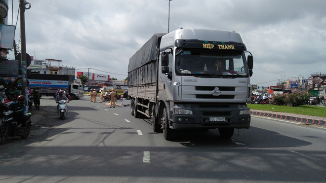 Tại hiện trường, nạn nhân (khoảng 40 tuổi), không có giấy tờ tùy thân, trên người nạn nhân có vết bánh xe nghi do bị phương tiện khác chèn qua. Ở làn đường ô tô sát dải phân cách với làn xe hai bánh có nhiều cát và vết cày trên mặt đường.