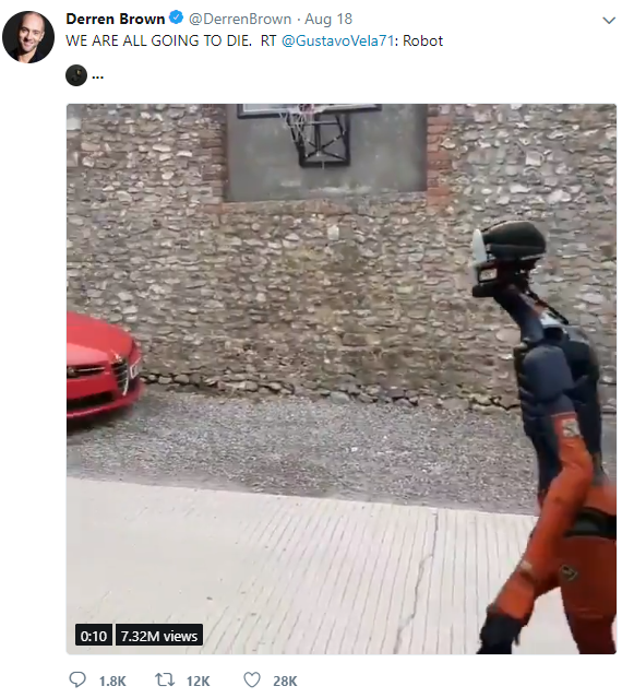 Nhiều người đã rầm rộ chia sẻ đoạn video về một chú robot đáng sợ. Chú robot giống hệt người này làm người xem thực sự ngỡ ngàng. Họ sợ hãi lo ngày tận thế cho loài người sắp tới.