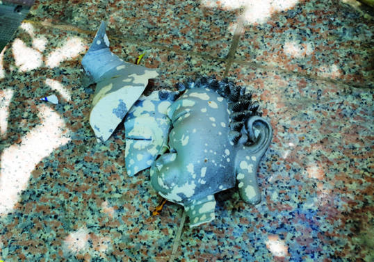 Mặt Phật tại chùa Bảo Quang vỡ tan. (Hình: Đằng-Giao/NV)