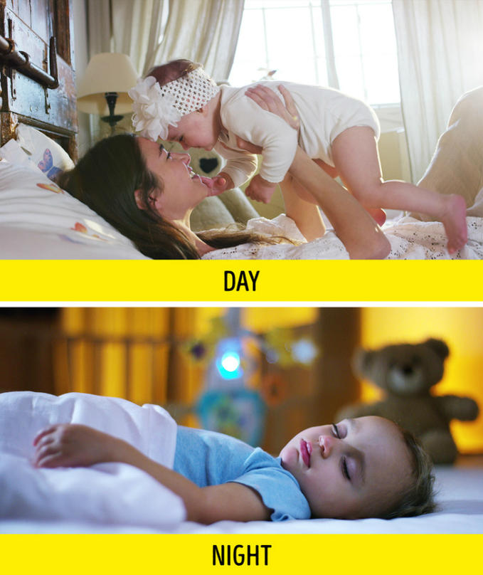 Logic rất đơn giản - nếu em bé đã ngủ cả ngày, chúng sẽ không thể thẳng giấc buổi đêm. Nhưng nếu em bé có thời gian biểu trong ngày với sự sắp xếp ăn, ngủ có tổ chức, ban đêm sẽ là khoảng thời gian nghỉ ngơi cho cả mẹ và con.