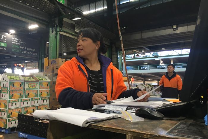 Anh Vinh Nguyen đang phụ giúp cha điều hành kinh doanh tại Sydney Markets. (ABC Rural: Kieu Trinh Nguyen)