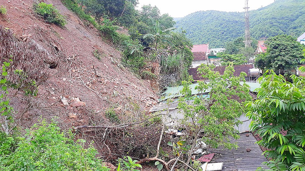 Hiện trường vụ sạt lở núi tại khối 4, thị trấn Mường Xén (huyện Kỳ Sơn, Nghệ An) đêm 25-8