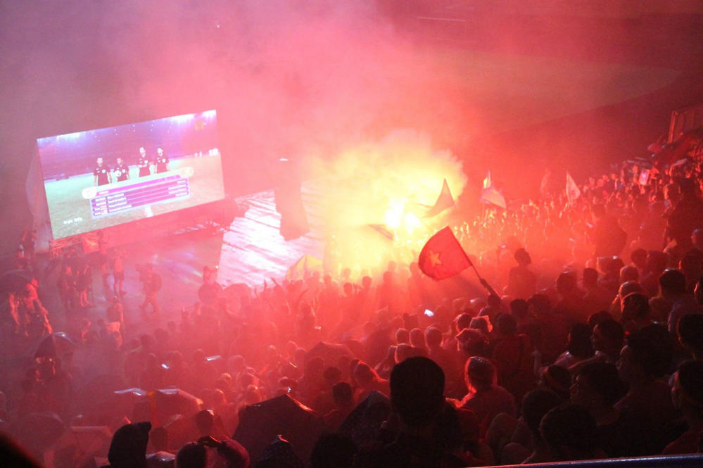 Sân vận động Hàng Đẫy, Hà Nội vỡ oà trước chiến thắng của Việt Nam trước Syria. (Ảnh: Việt An)