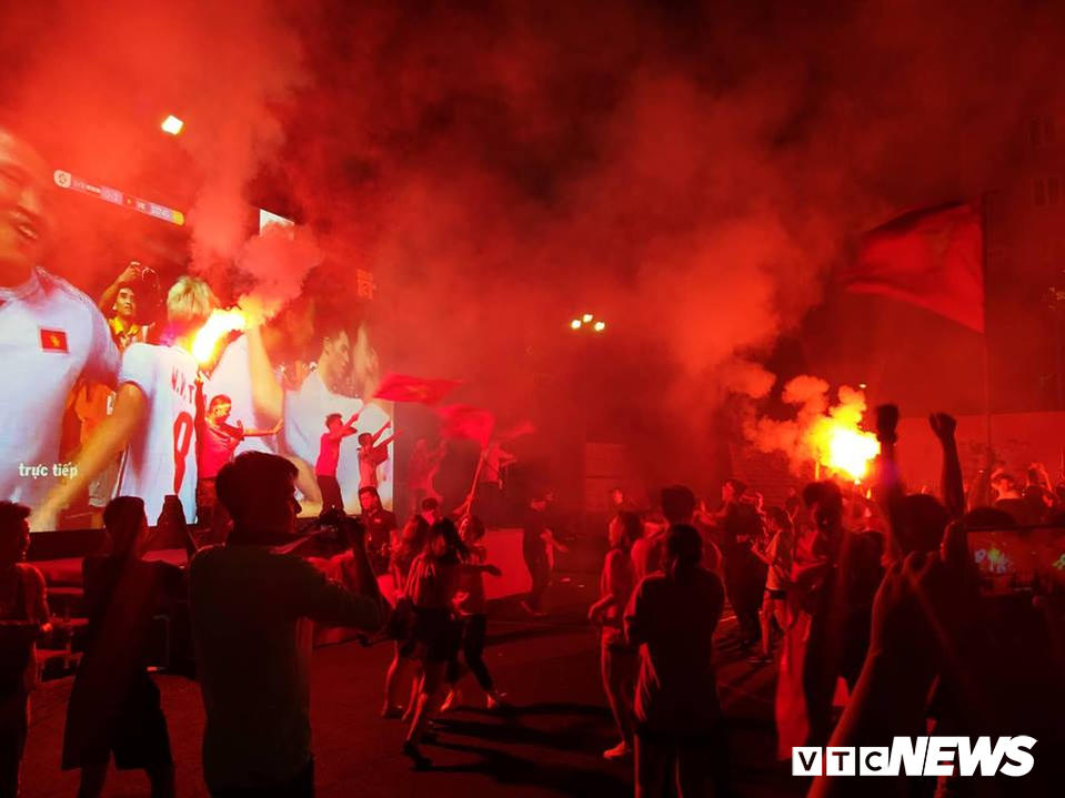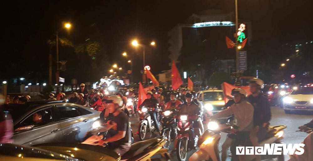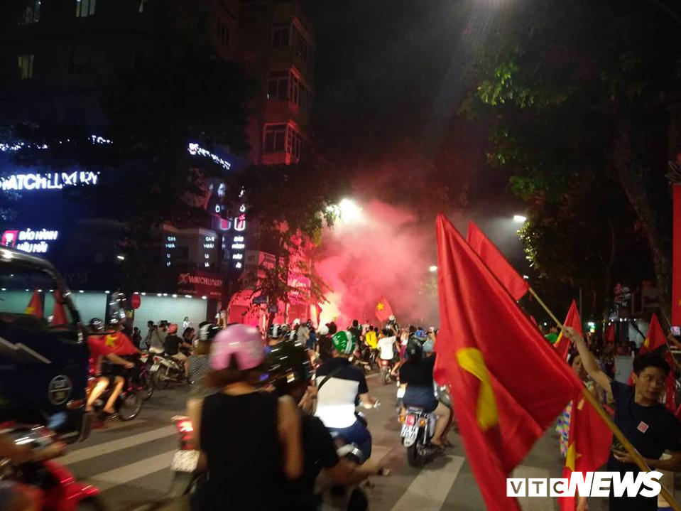 Cổ động viên Thủ đô đổ xô ra đường ăn mừng chiến thắng. (Ảnh: Xuân Trường)