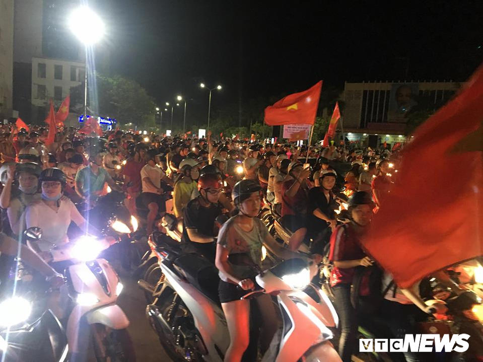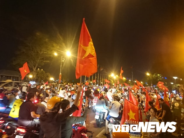 Hàng chục nghìn lượt người đang đổ về hô vang 'Việt Nam vô địch' tại ngã 6 trung tâm TP Huế.