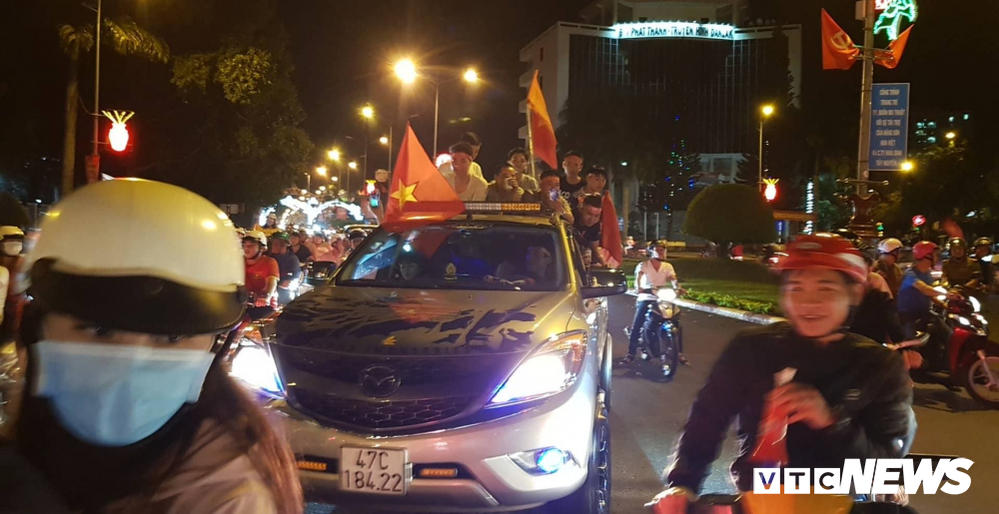 Dân TP Buôn Ma Thuột (Đắk Lắk) xuống đường ăn mừng chiến thắng của đội tuyển U23 Việt Nam. (Ảnh: Thanh Hải)