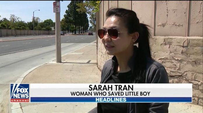 Bà Sarah Trần nói với đài truyền hình địa phương FOX 11 rằng: “Đứa nhỏ thật may mắn. Thằng bé may mắn là không có chuyện gì xảy ra, nhất là vào một ngày đông đảo xe cộ như hôm nay.”